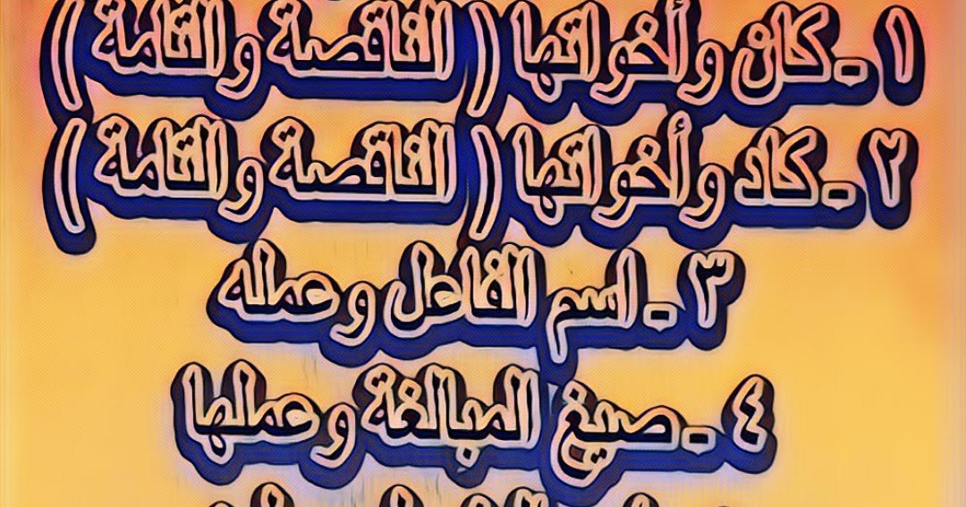 درس النحو كاملا للصف الاول الثانوي يشمل كان واخواتها وكاد واخواتها واسم الفاعل وعمله وصيغ المبالغة وعملها واسم المفعول