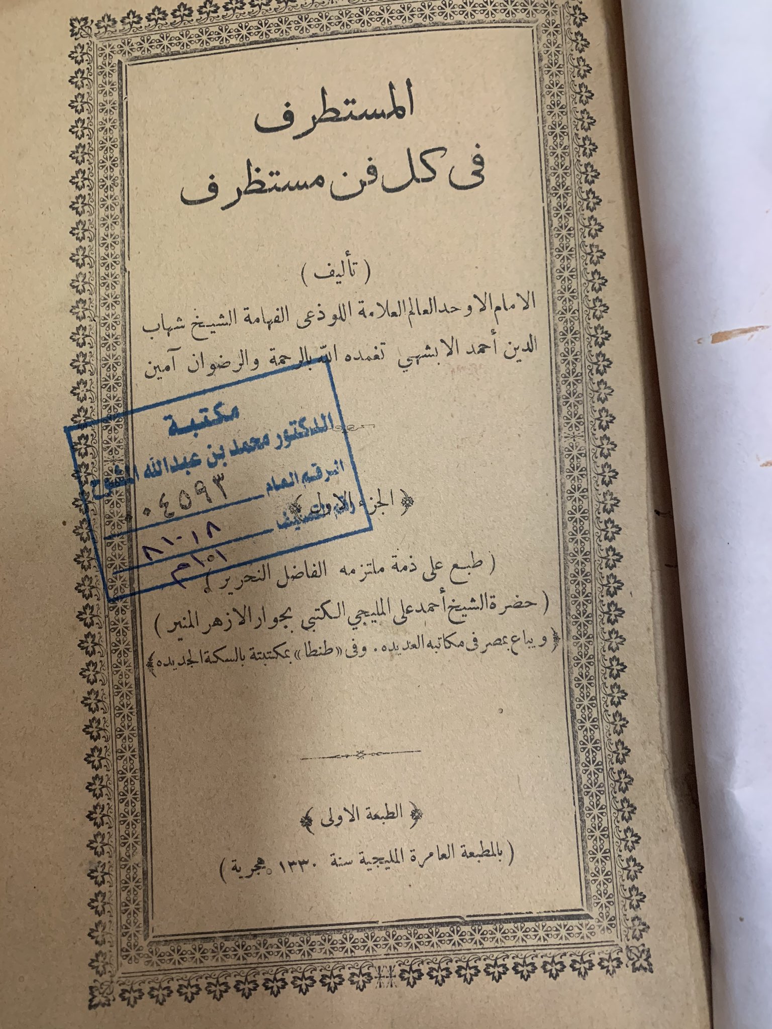 الثلوثية בטוויטר نوادر مكتبتي عام 1405هـ في المرحلة الثانوية كان كتاب المستطرف في كل فن مستظرف للابشيهي أول كتاب أدبي تراثي اشتريته وما زال عندي صار اليوم ولله الحمد في مكتبتي أولى